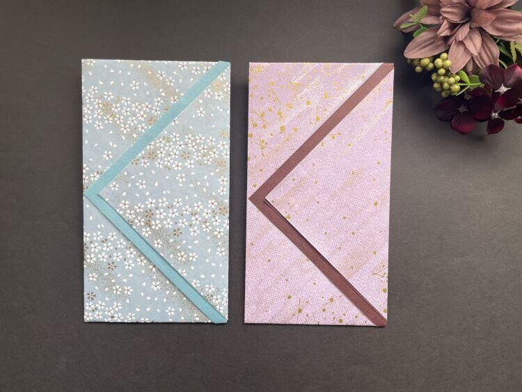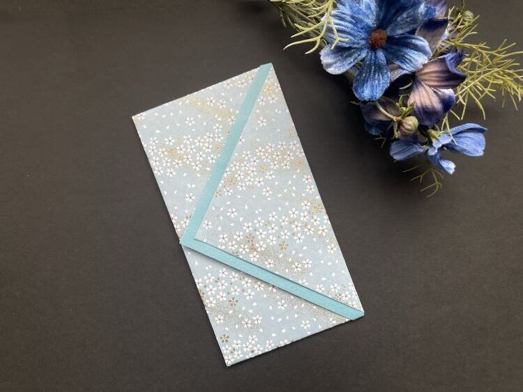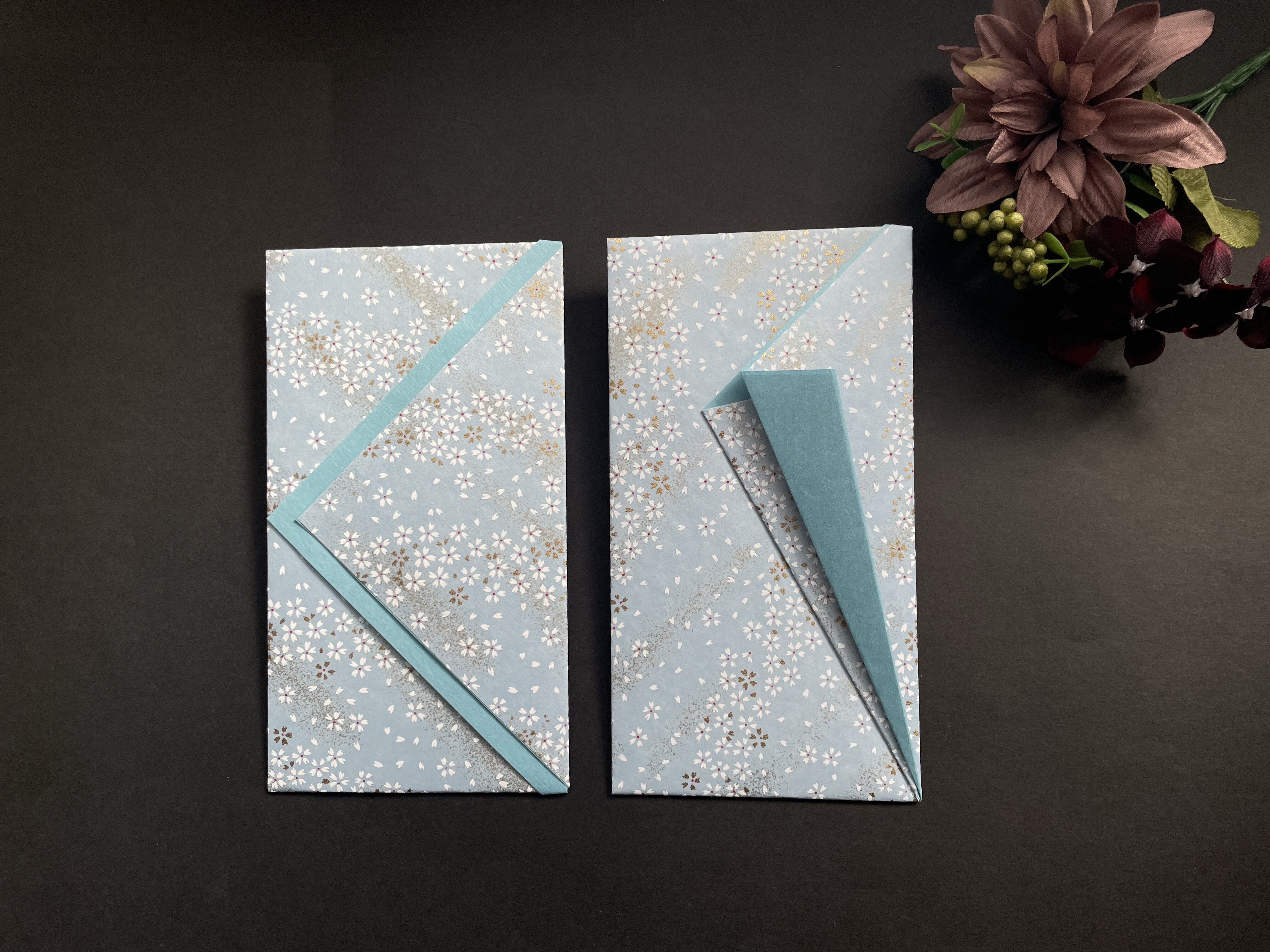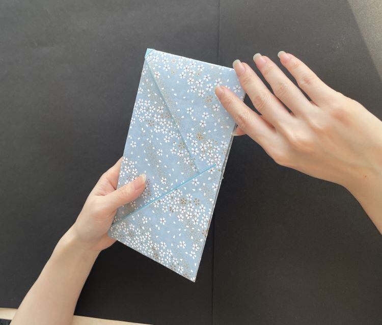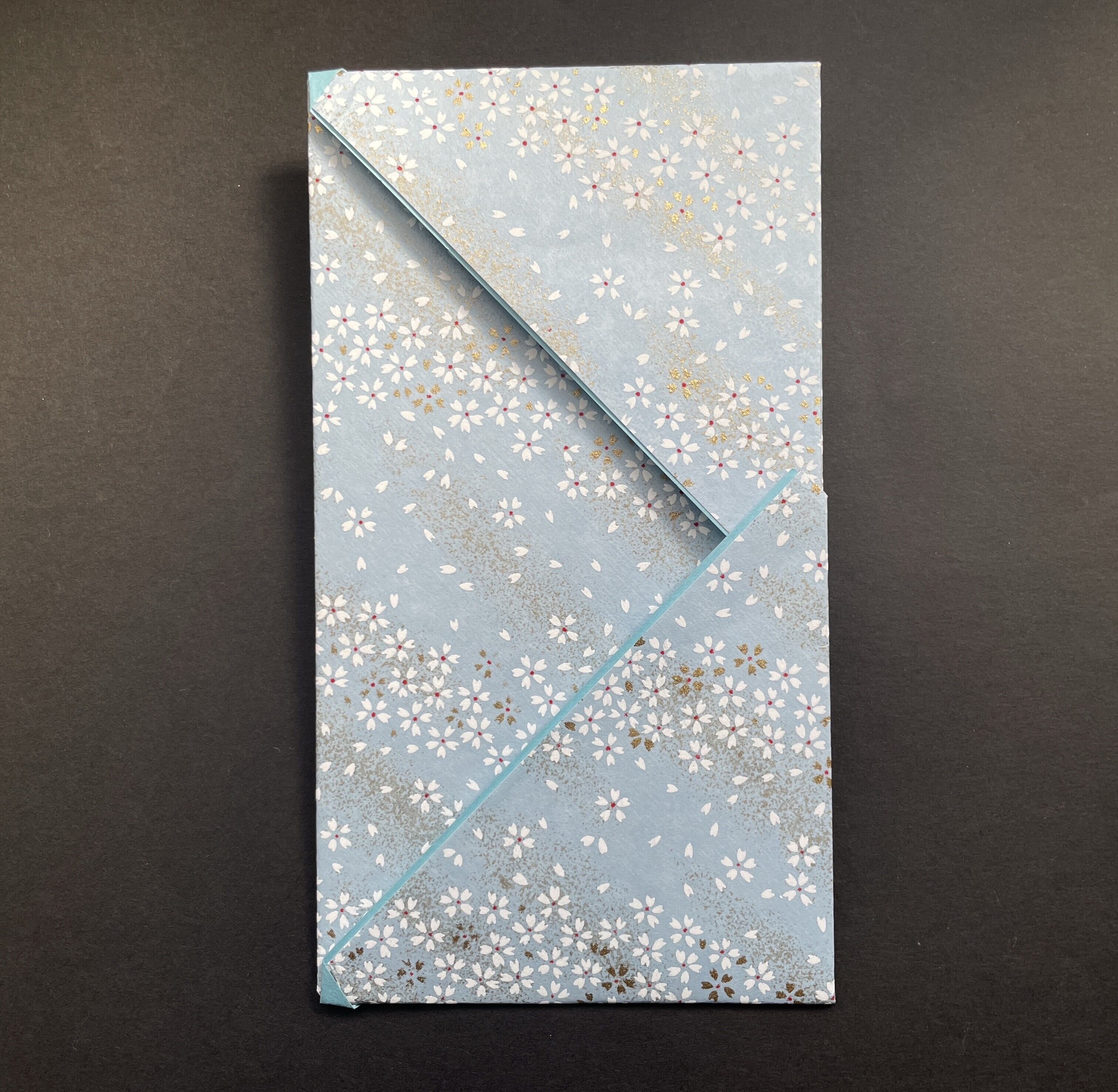 【しのぶふみ】桜 小なりサイズ 20㎝×11㎝ 厚み2㎜ 桜柄には「春の訪れ」という意味があり、縁起が良いとされています。桜吹雪に金を使った 美しい手染め友禅和紙を使い、日本伝統の折形技法を用いて、ひとつずつ手づくりしています。中に直筆用の和紙(どの色か1枚)が入っております。